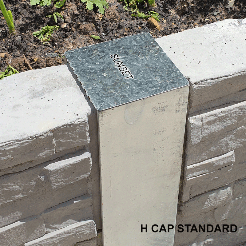 Galvanised Steel Caps are a great way to finish your retaining wall. A must-have for those who want to cover the steel gap from above. Choose between the standard or the one with wings if your sleepers are up to 20mm above the steel post